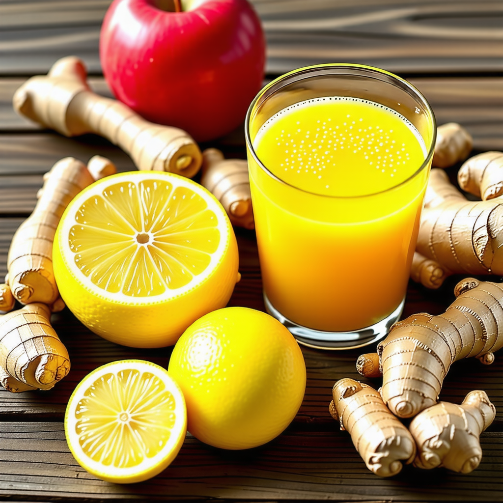재료: 생강 약 20-30g (껍질을 벗긴 상태) 레몬 1개 꿀 또는 아가베 시럽 (선택 사항) 물 약간